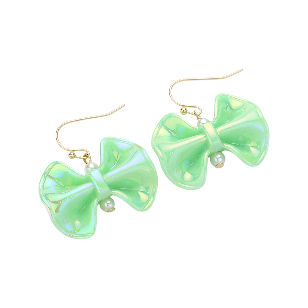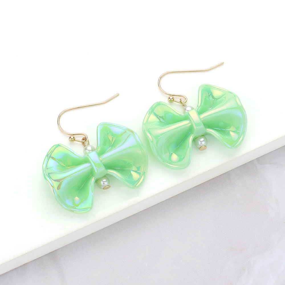 Metallic Resin Bow Dangle Earrings