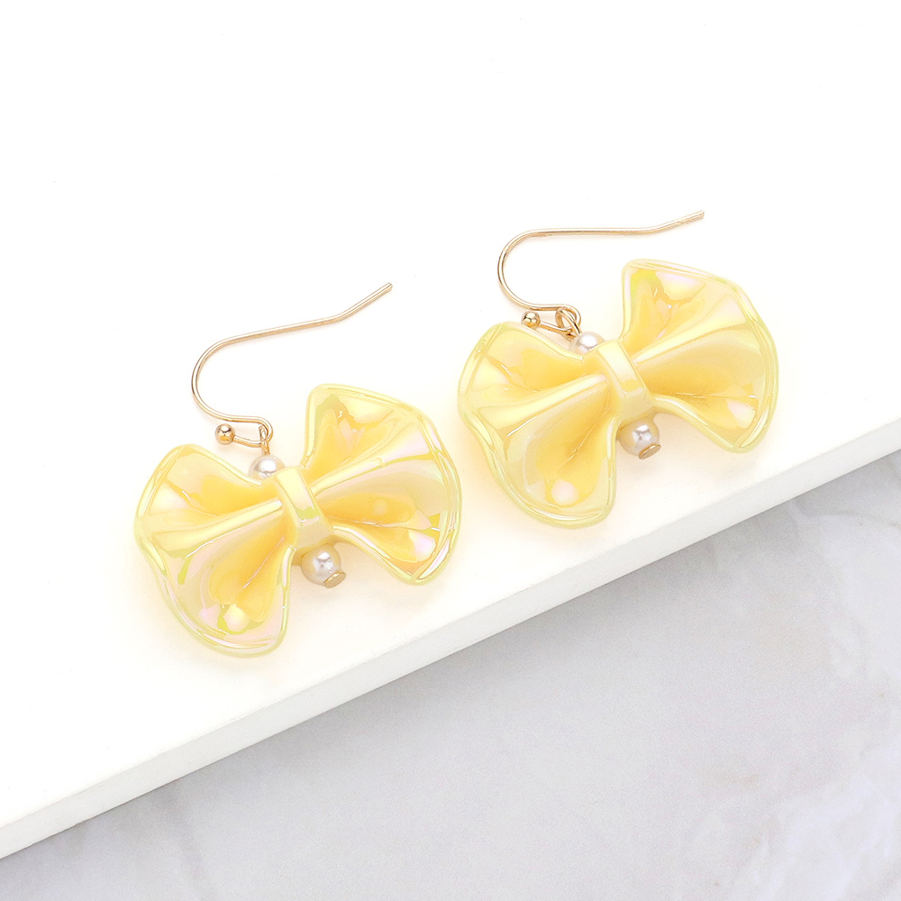 Metallic Resin Bow Dangle Earrings