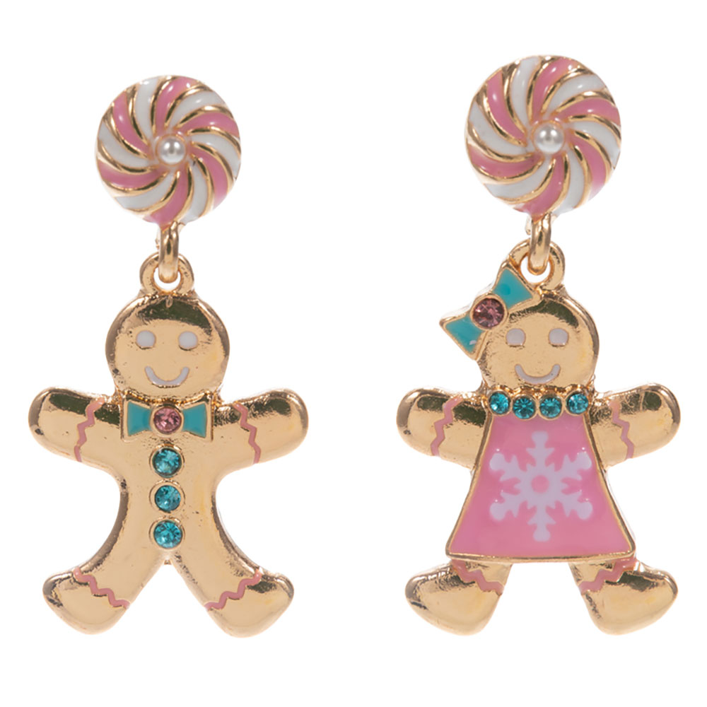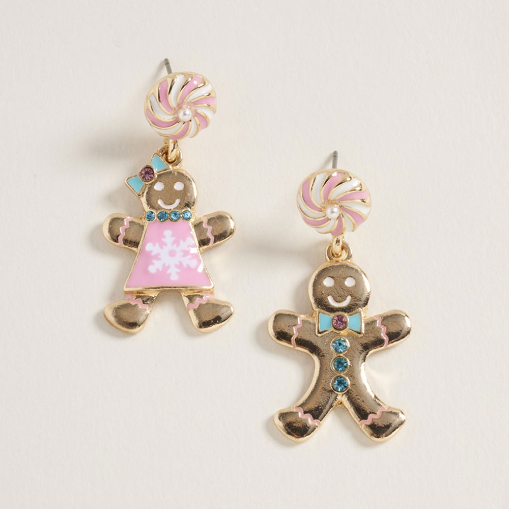 Details • Size : 0.75" X 1.5" • Titanium Post Back • Celebrate the holiday season with this playful mismatched earring set featuring a gingerbread man and woman. A cheerful, festive touch for parties, gifts, or everyday fun during the winter months. • Lead and Nickel Compliant • Hypoallergenic