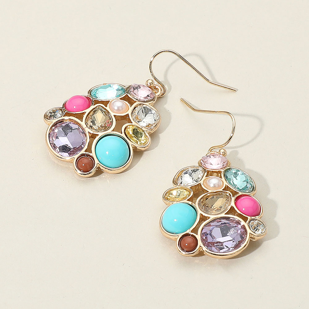 Details • Size : 1" X 1.6" • Fish Hook Back • Stylish drop earrings featuring mixed stones in a polished setting. A perfect accessory to enhance both everyday outfits and special occasion looks with a touch of elegance and sparkle. Lightweight and designed for all-day wear. • Lead and Nickel Compliant