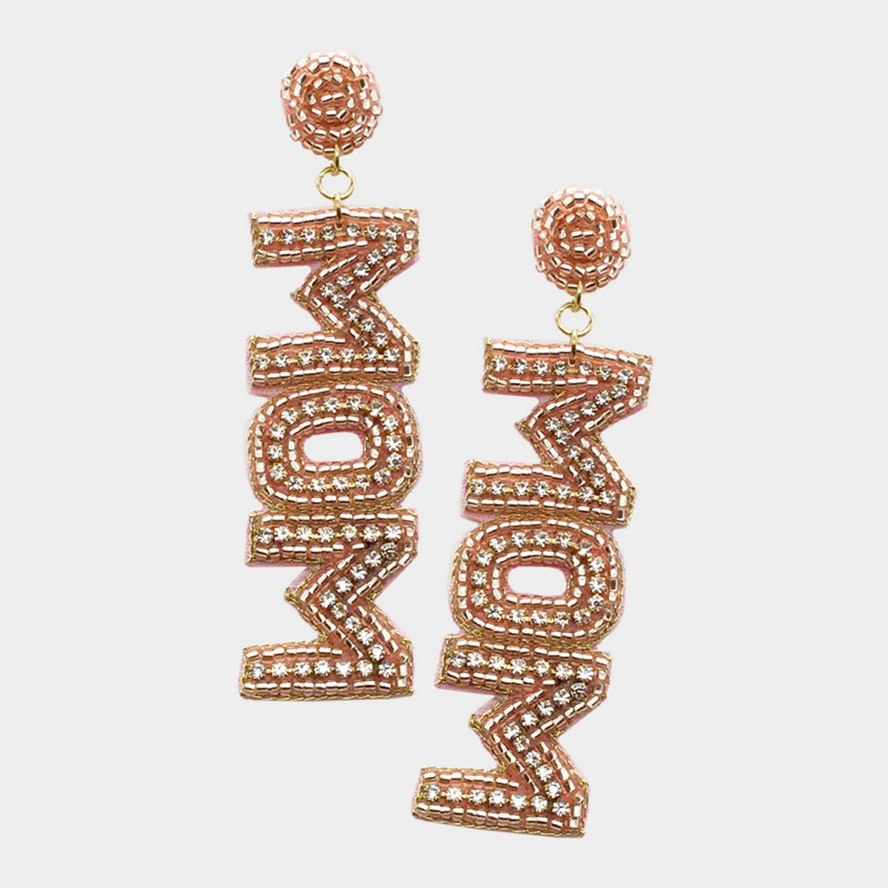 MOM Felt Back Rhinestone Beaded Message Dangle Earrings