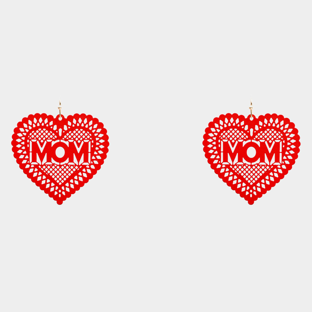 MOM Message Colored Brass Metal Heart Dangle Earrings