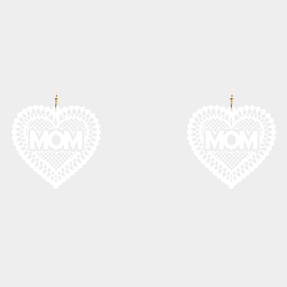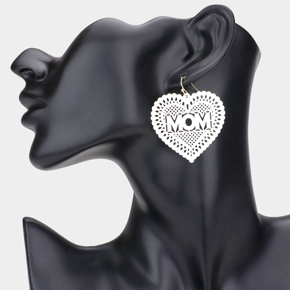 MOM Message Colored Brass Metal Heart Dangle Earrings