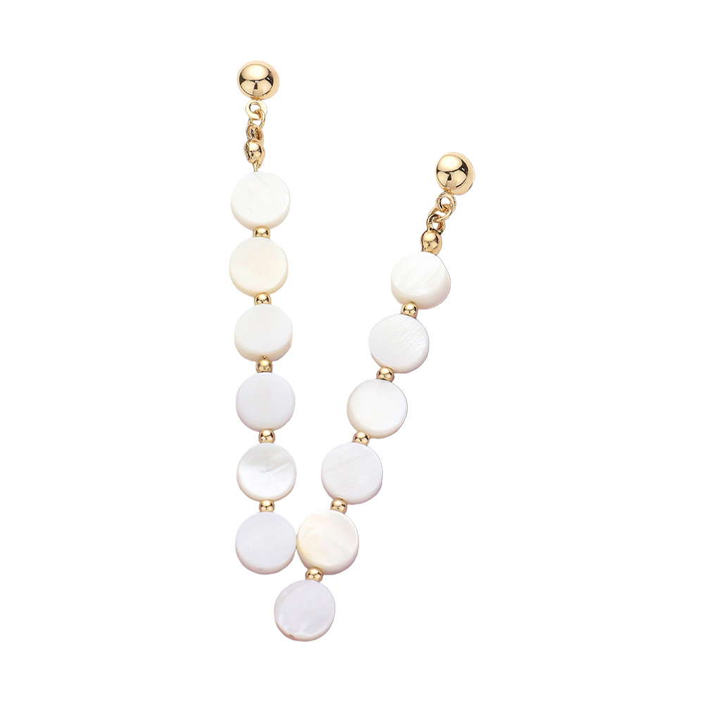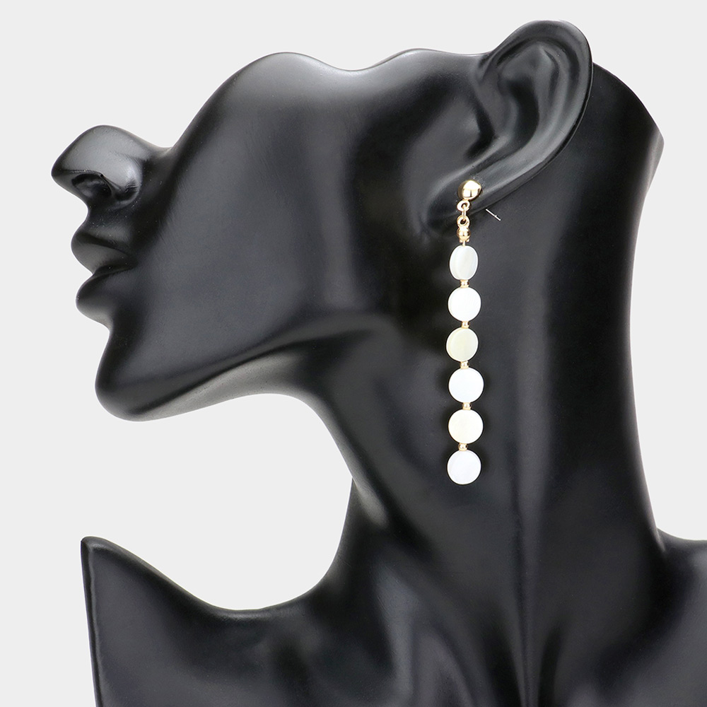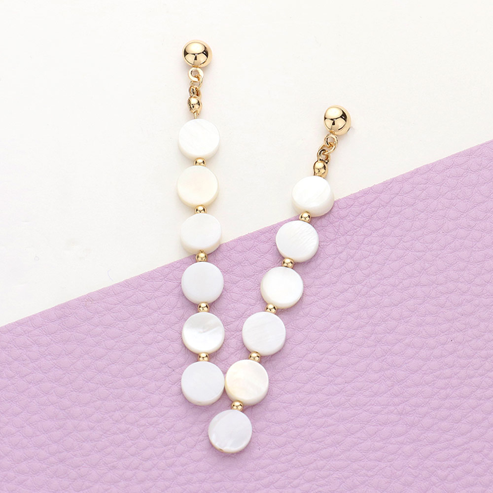 Mother Of Pearl Disc Station Paperclip Metal Chain Layered Bracelet