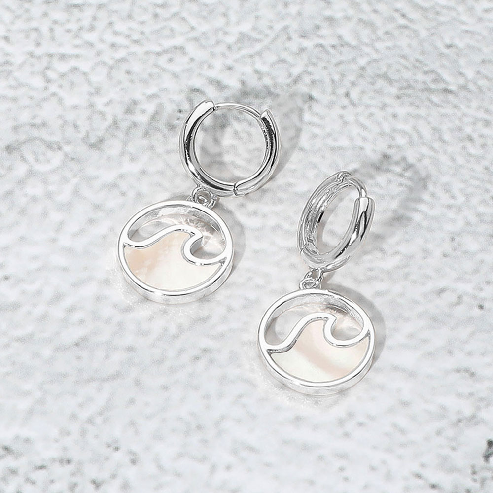 Details • Size : 0.5" X 1" • Huggie Back • Add a touch of coastal charm with these gold-plated wave drop earrings, featuring a circular design and glossy mother of pearl inlay. Lightweight and perfect for beach-inspired looks. • Lead and Nickel Compliant • Brass