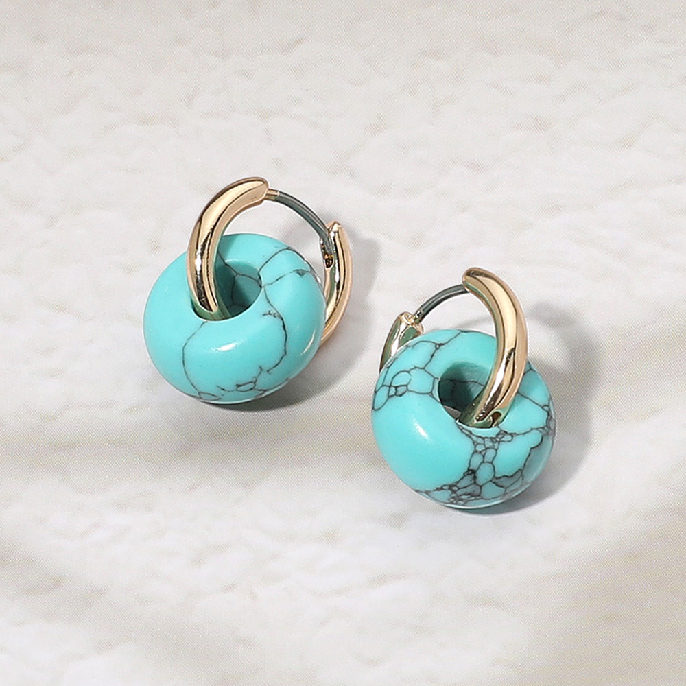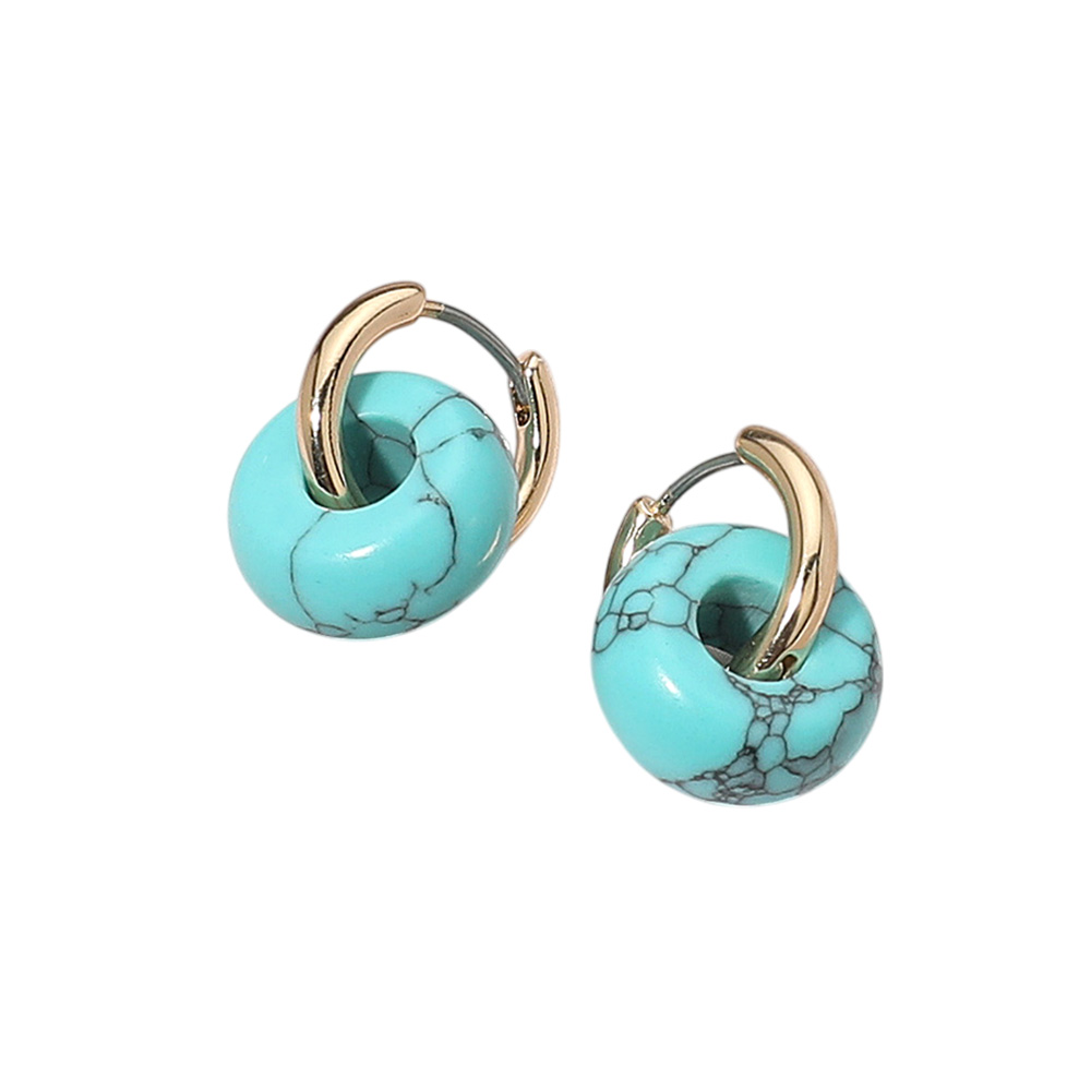 • A versatile collection of mini hoop earrings accented with smooth stone charms in assorted finishes. Each pair features a polished gold-tone huggie-style hoop with a hinged closure for easy, secure wear. From soft rose and frosted white to bold turquoise, lapis, and golden brown, these earrings offer a perfect mix of everyday neutrals and statement tones. Lightweight, comfortable, and ideal for layering or gifting.
