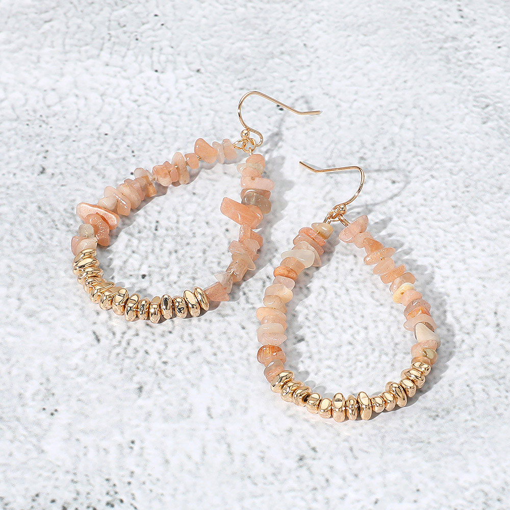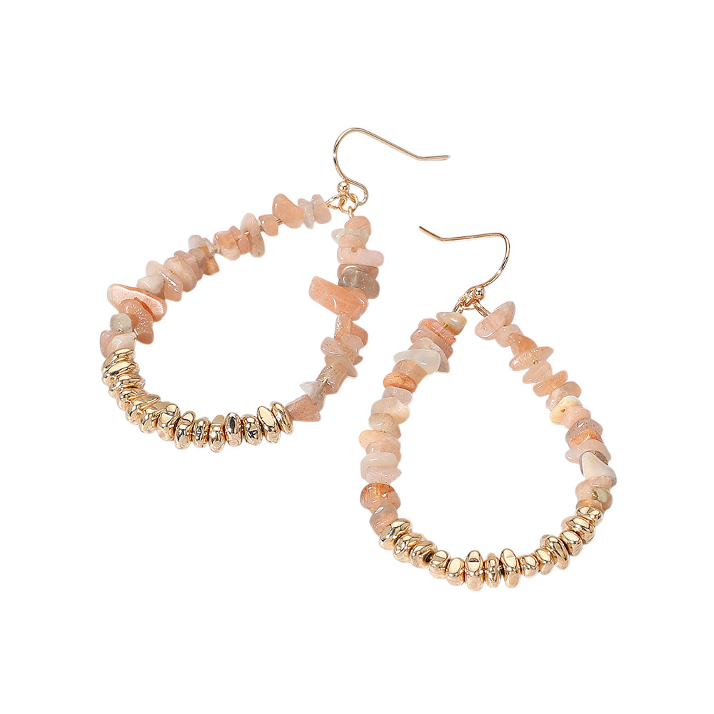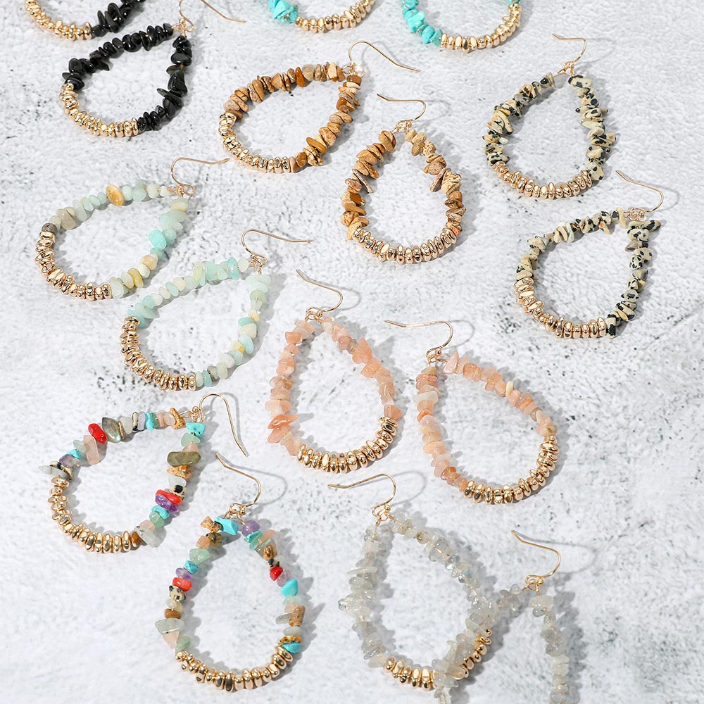 Natural Stone Metal Beaded Teardrop Dangle Earrings