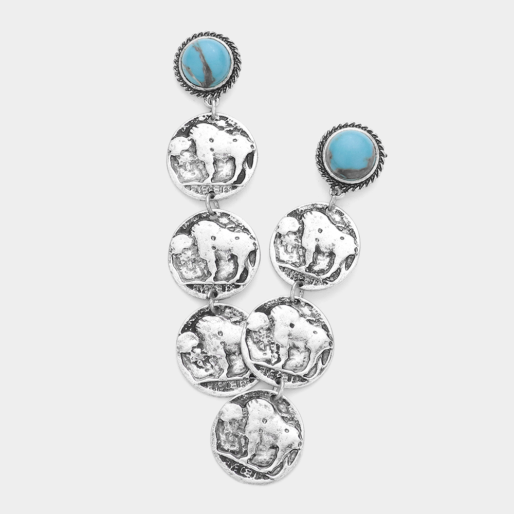 Western Oval Turquoise Stone Pointed Antique Metal Stretch Bracelet