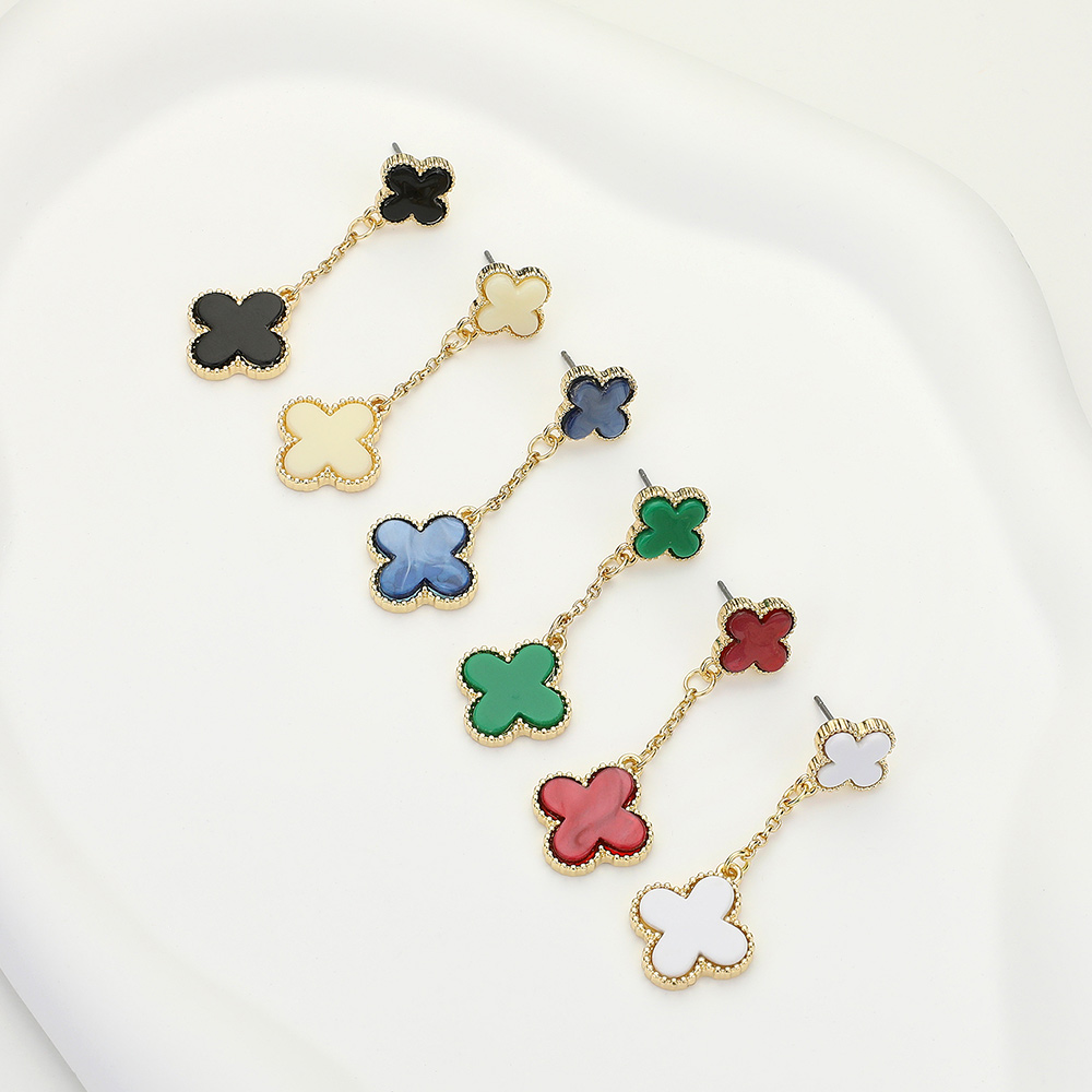 Natural Stone Quatrefoil Dropdown Dangle Earrings
