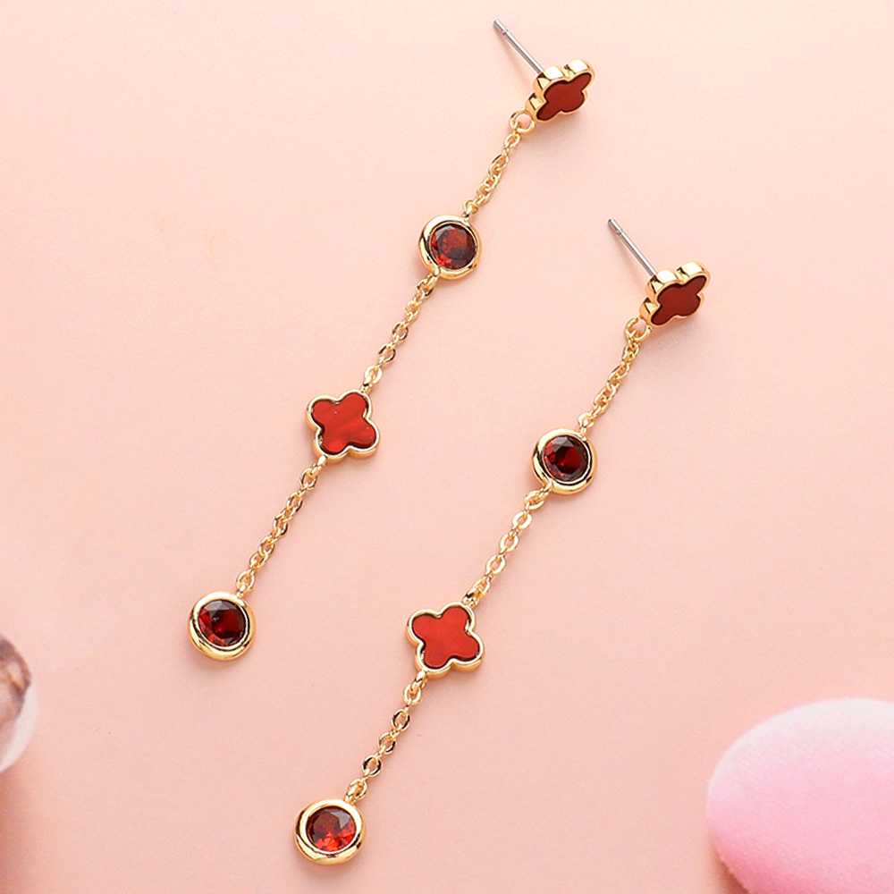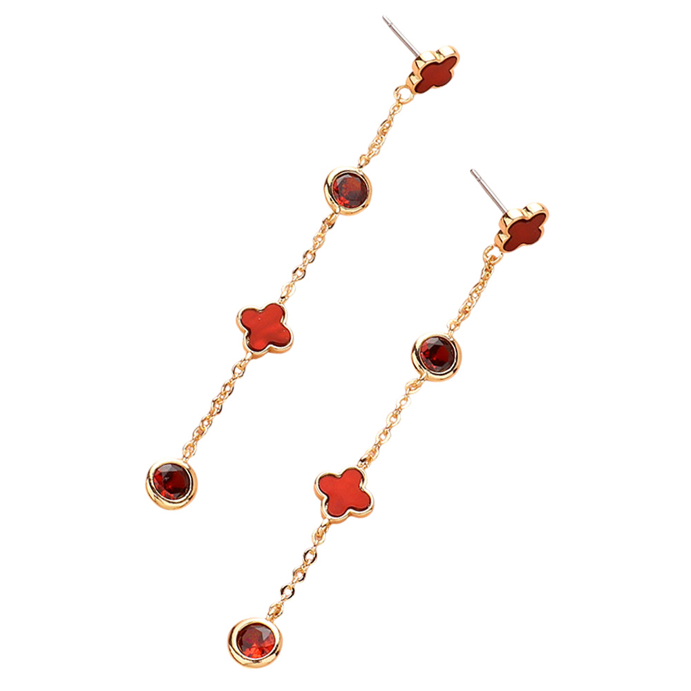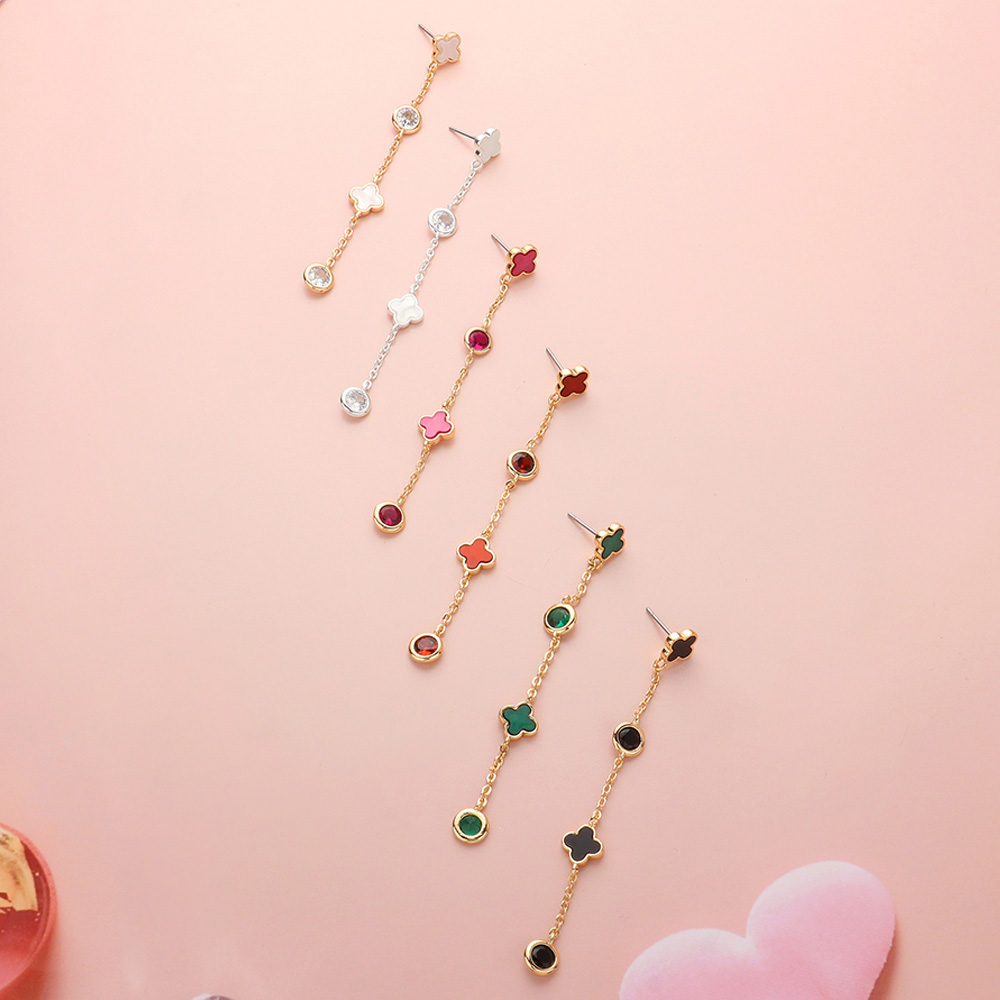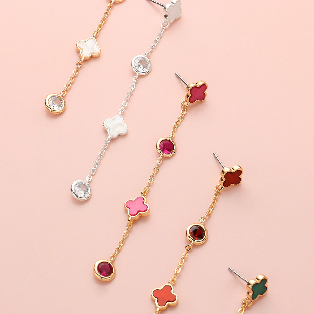 Triple Quatrefoil Stone Cluster Link Dropdown Dangle Earrings