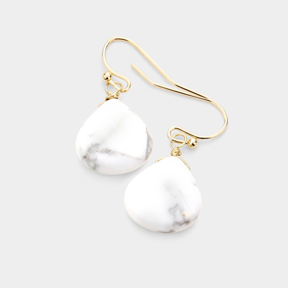 Natural Stone Metal Beaded Teardrop Dangle Earrings