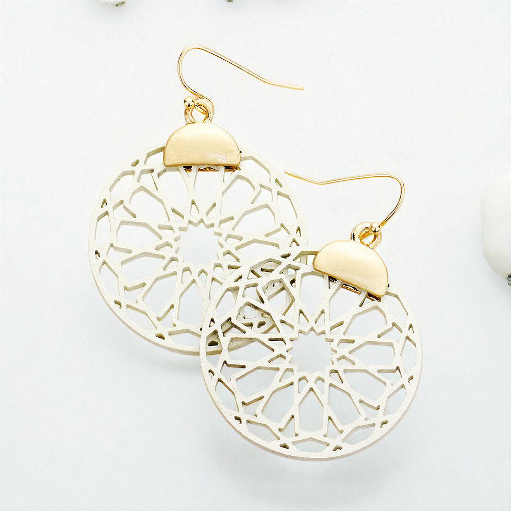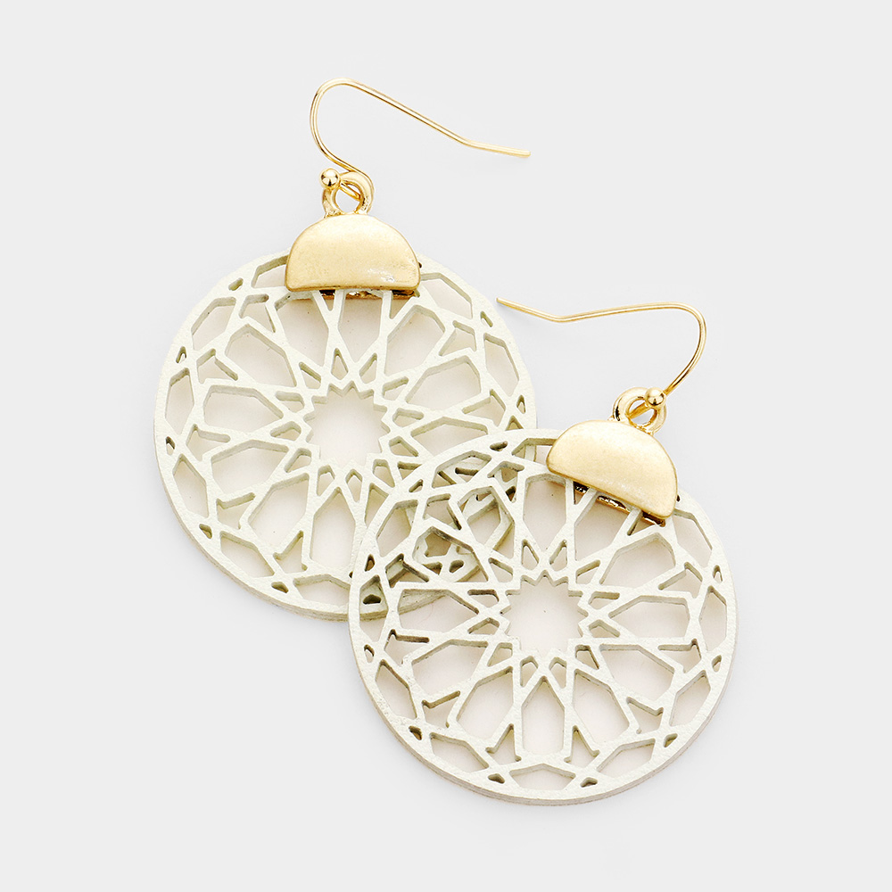 Brass Metal Filigree Tropical Leaf Dangle Earrings
