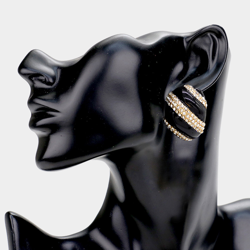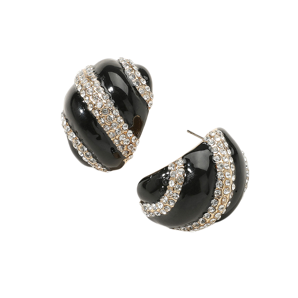 Oblique Lined Rhinestone Embellished Curved Enamel Earrings