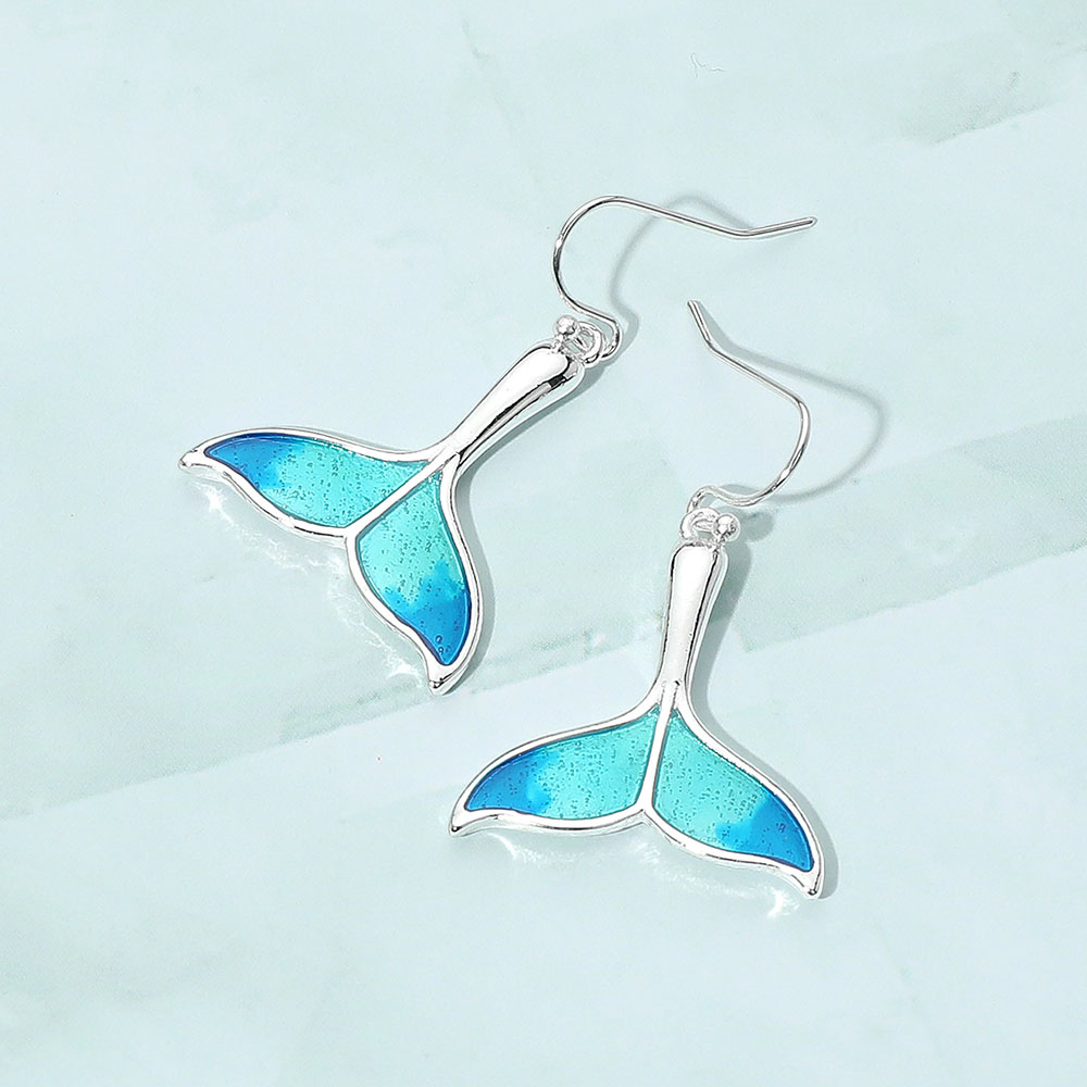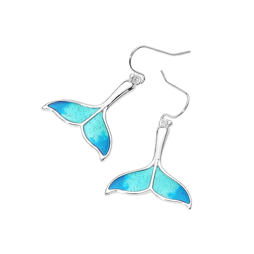 Details • Size : 1" X 1.4" • Fish Hook Back • Dive into coastal charm with these silver Whale tail drop earrings, featuring vibrant ocean blue enamel for a whimsical, beachy vibe. Lightweight and fun, they’re perfect for summer outfits, vacations, or mermaid-themed styles. A magical accessory for sea lovers and free spirits. • Lead and Nickel Compliant