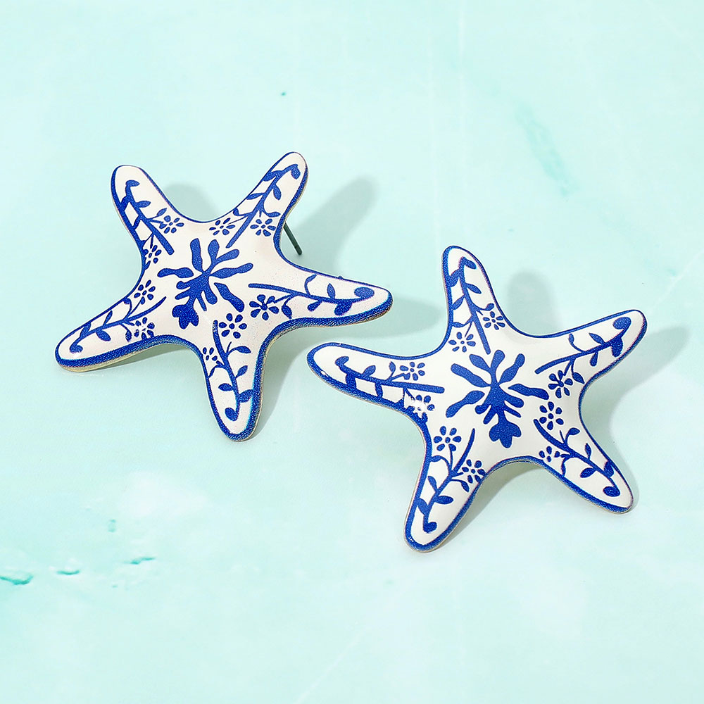 Details • Size : 1.75" X 1.75" • Post Back • Add a touch of seaside charm with starfish earrings featuring intricate ocean-inspired patterns. Lightweight and stylish, these earrings bring coastal elegance, perfect for beach outings or nautical-themed looks.