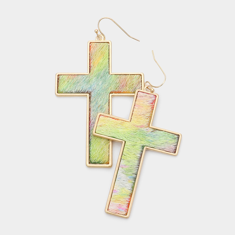 White Gold Dipped CZ Stone Embellished Cross Dangle Earrings