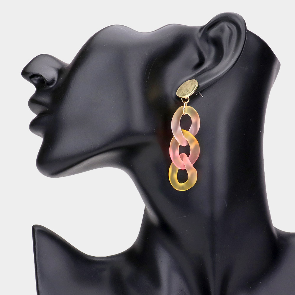 BOSS Message Accented Faux Leather Chain Hoop Earrings