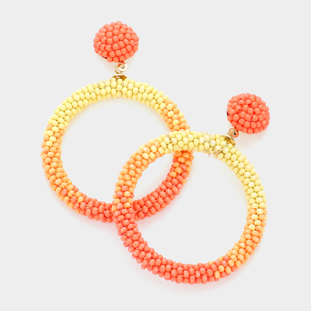 Ombre Seed Beaded Open Circle Dangle Earrings