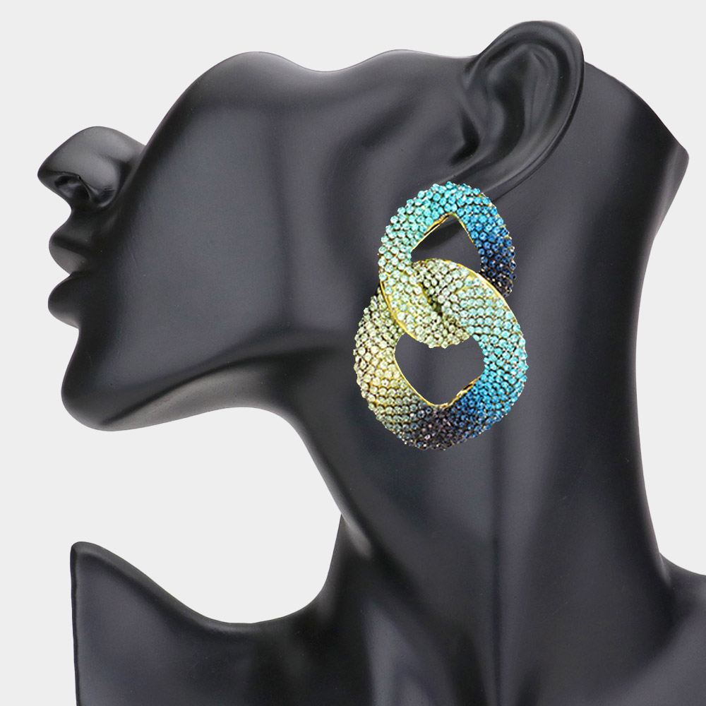Bold Faceted Teardrop Round Stone Wide Hinged Bangle Bracelet