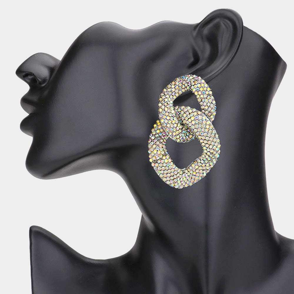 White Gold Dipped CZ Stone Double Row Mini Half Hoop Earrings