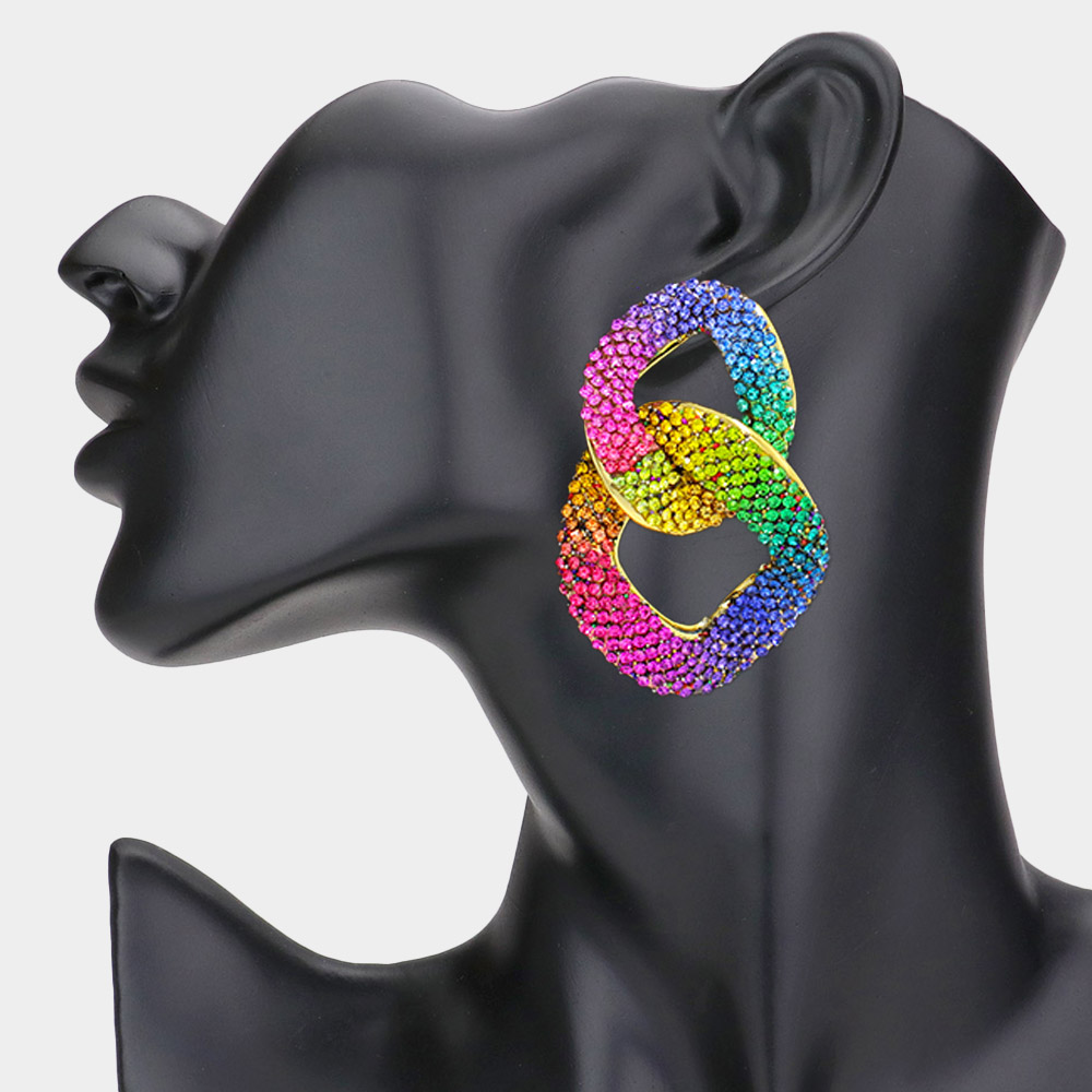 Felt Back Stone Embellished Seed Beaded Tropical Leaf Dangle Earrings