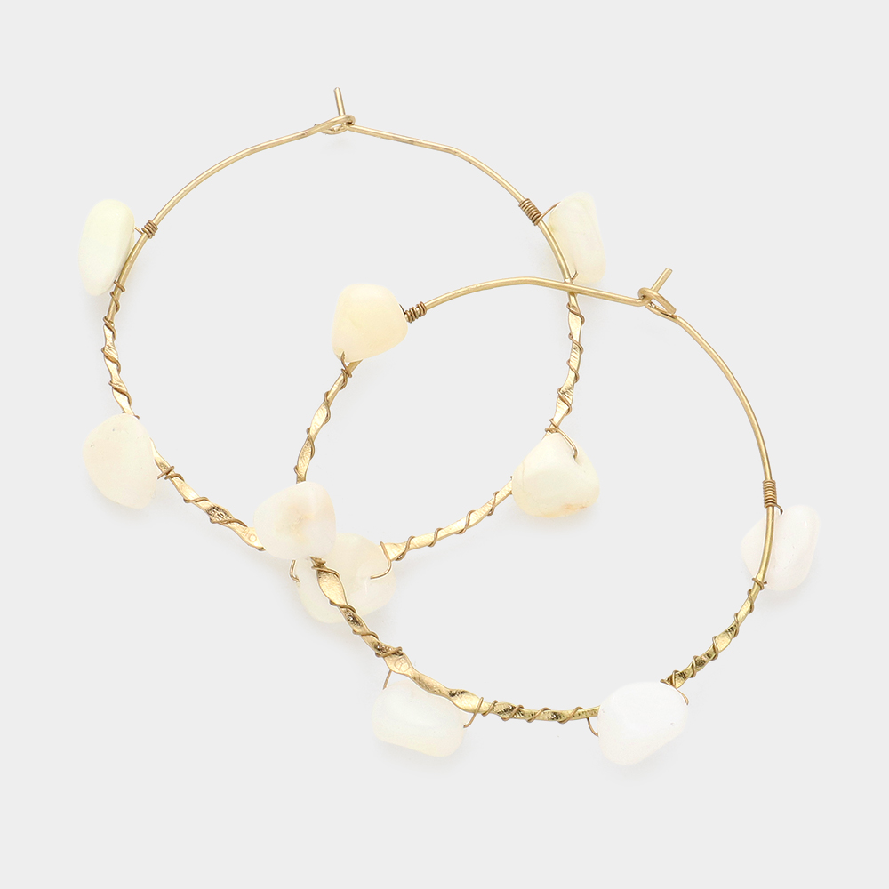 Open Circle Hoop Gemstone Earrings