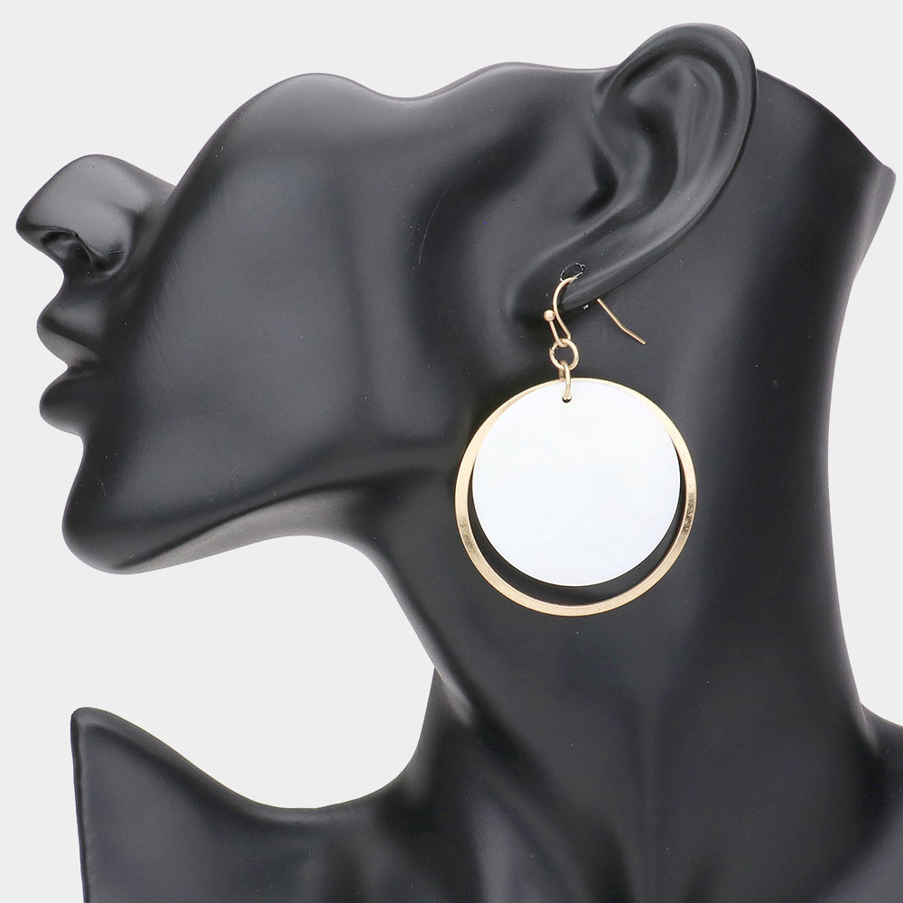 Open Metal Circle Round Mother of Pearl Layered Dangle Earrings