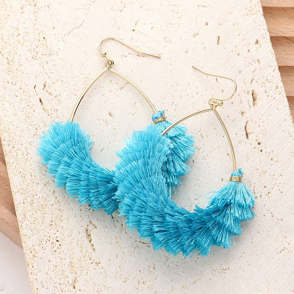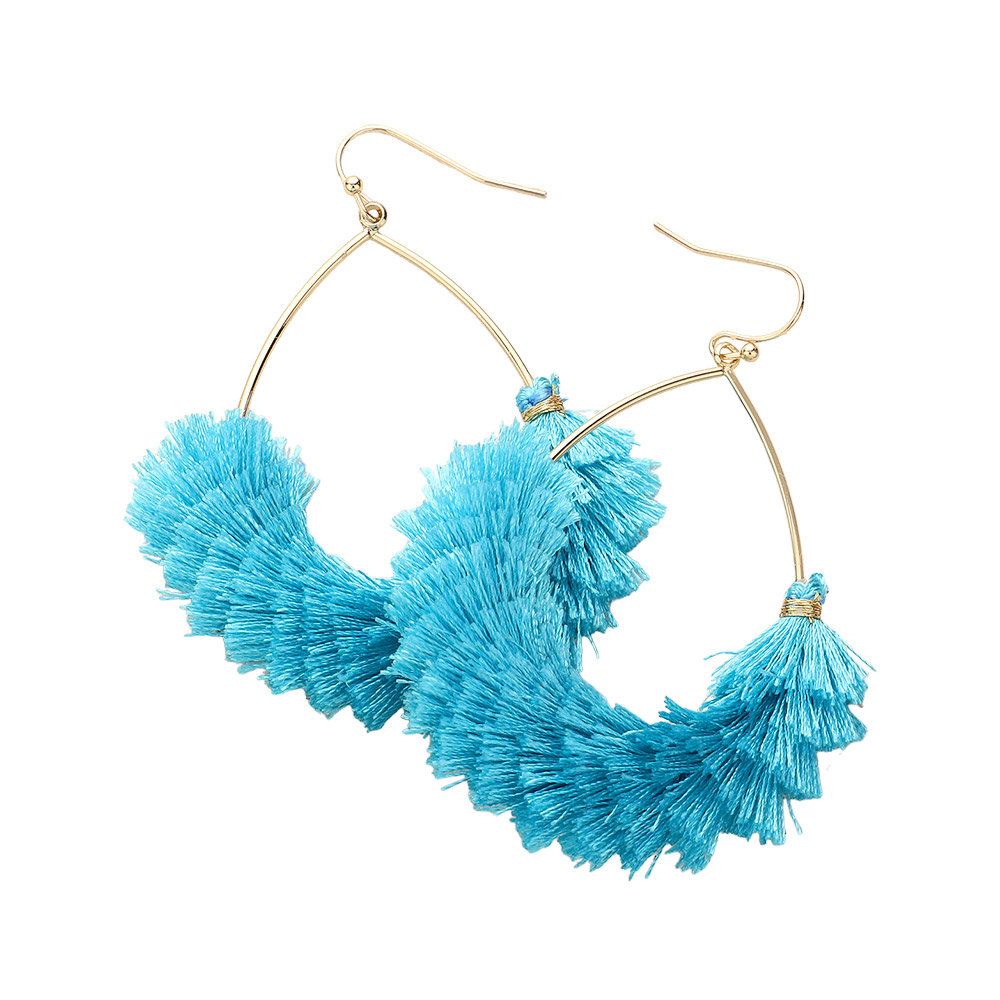 Bead Accented Gold Metallic Leatherette Tassel Necklace