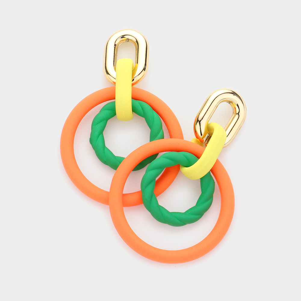 Raffia Wrapped Ball Pointed Metal Hoop Earrings