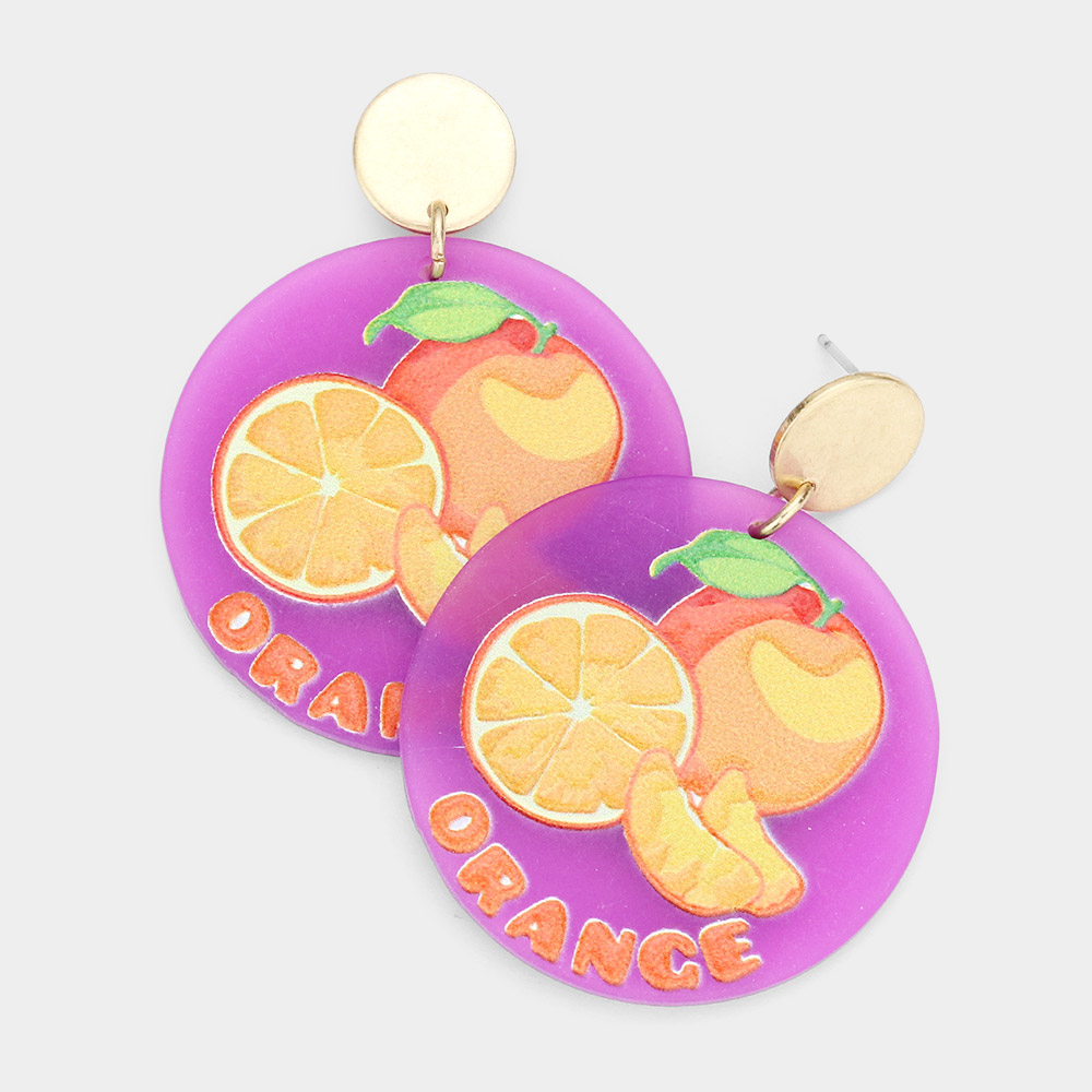 Dragon Fruit Printed Resin Round Dangle Earrings
