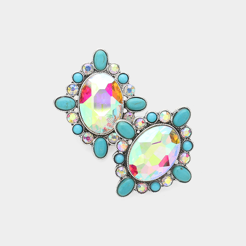 Oval Glass Stone Cluster Earrings