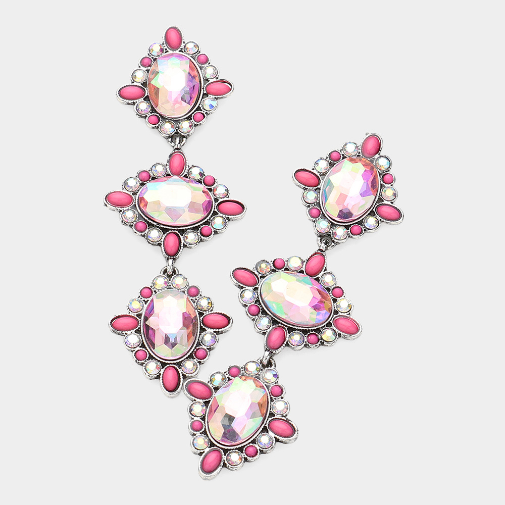 Oval Glass Stone Embellished Cluster Link Dropdown Earrings