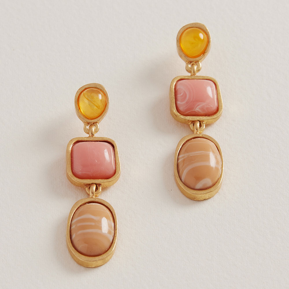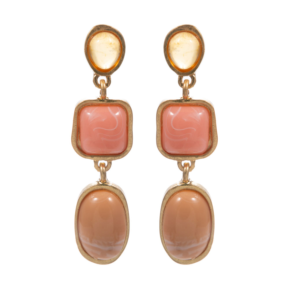 Oval Square Pebble Stone Cluster Link Drop Earrings