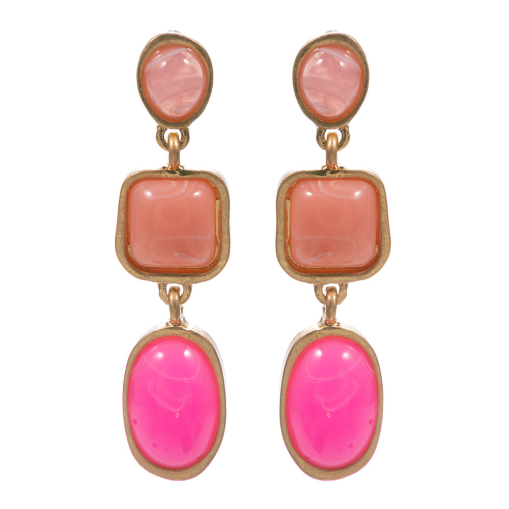 Details • Size : 0.5" X 2" • Titanium Post Back • Elegant triple drop earrings featuring teardrop, square, and oval-shaped accents. A stylish statement piece perfect for both casual and formal outfits, adding a touch of sophistication and charm. • Hypoallergenic • Lead and Nickel Compliant