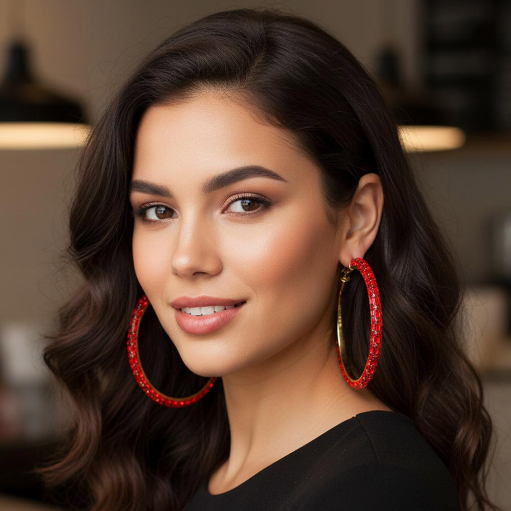 • Make a bold statement with these large hoop earrings featuring a sleek textured accent that adds depth and shine. Perfect for elevating both casual and evening outfits, their lightweight yet durable design ensures all-day comfort and timeless sophistication.