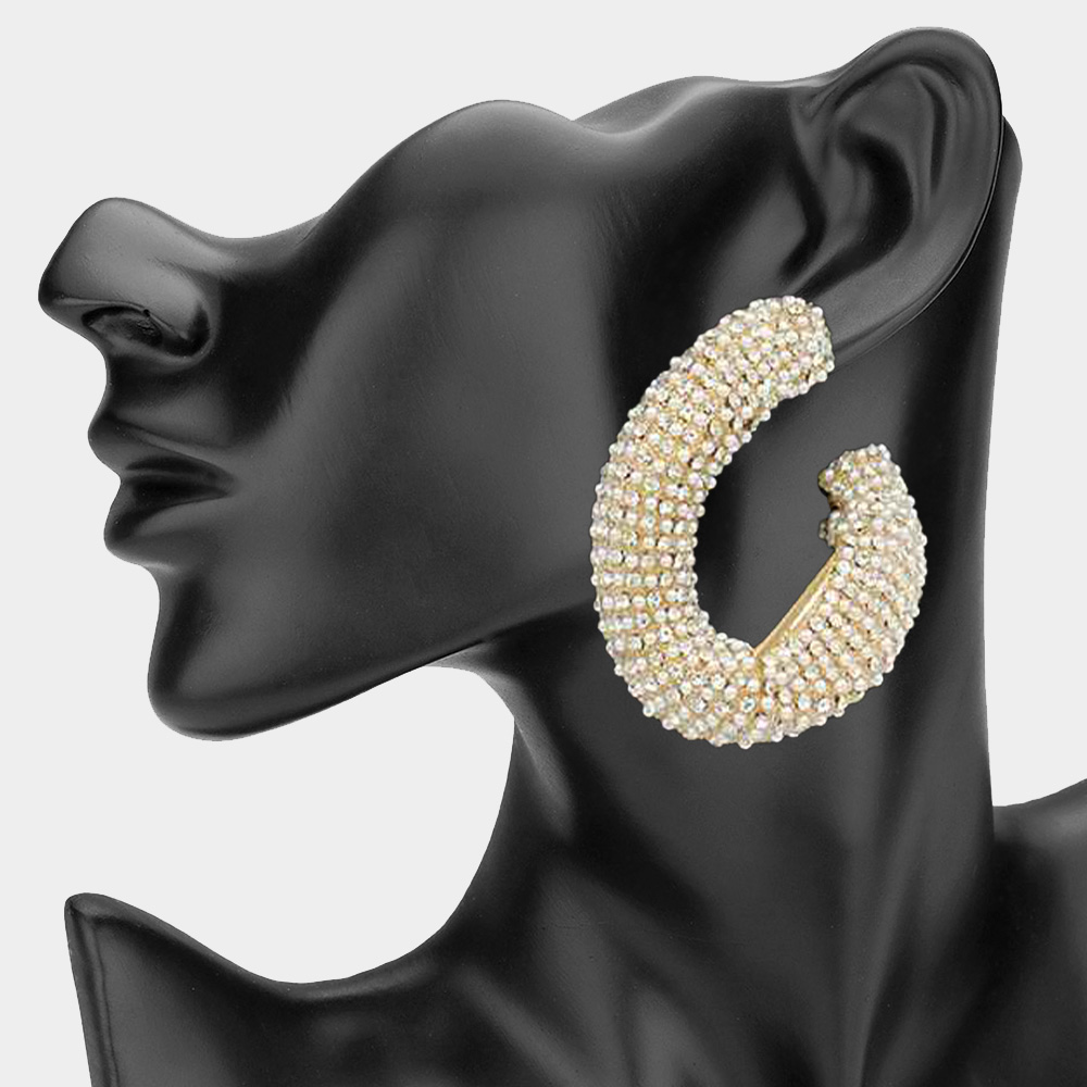 Oversized Bling Rhinestone Studded Twisted Open Teardrop Evening Hoop Earrings