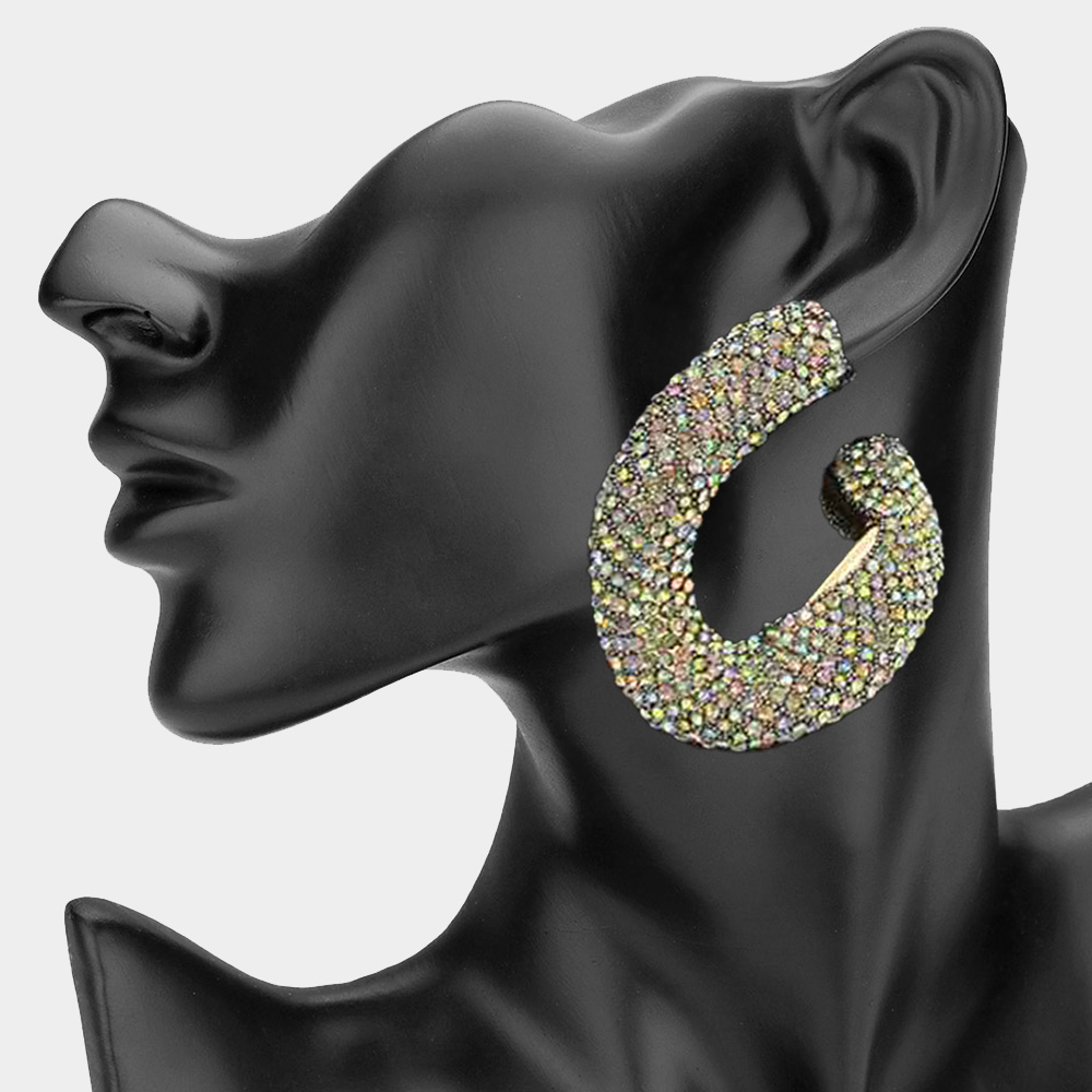 Oversized Bling Rhinestone Studded Twisted Open Teardrop Evening Hoop Earrings