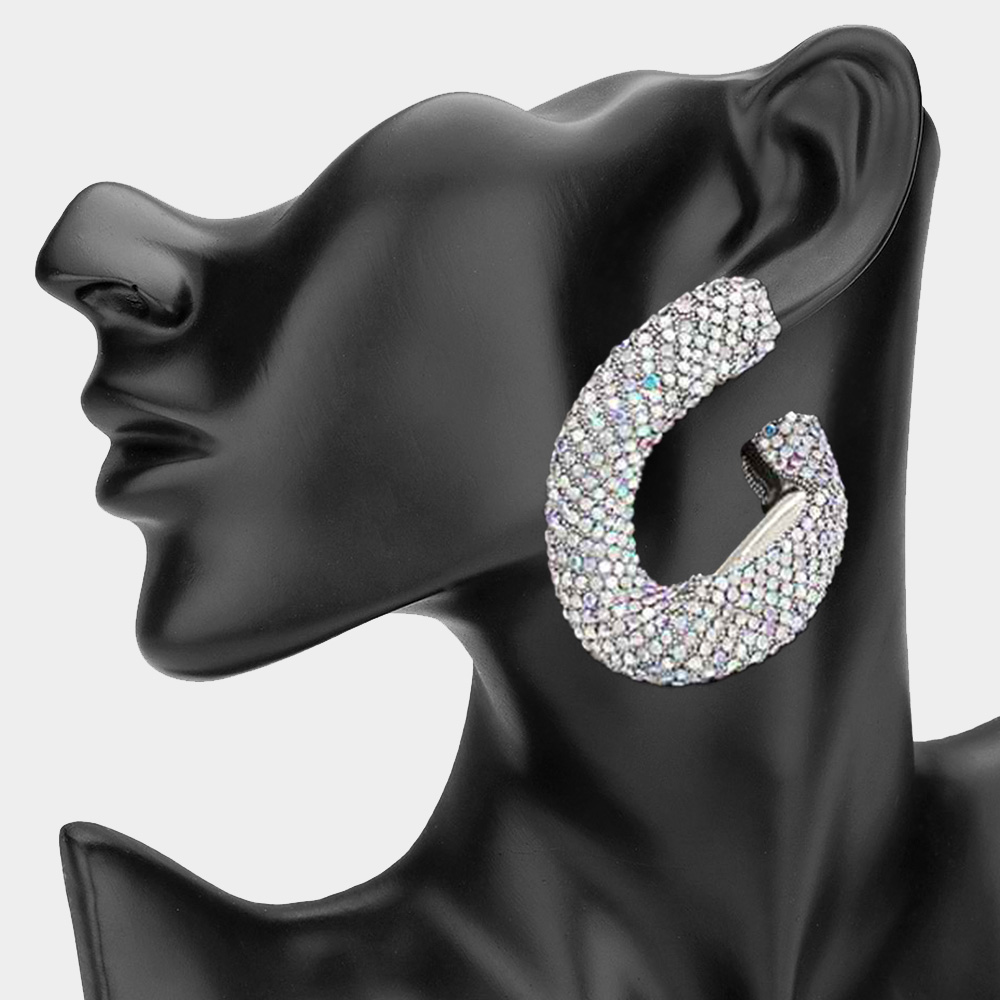 Oversized Bling Rhinestone Studded Twisted Open Teardrop Evening Hoop Earrings