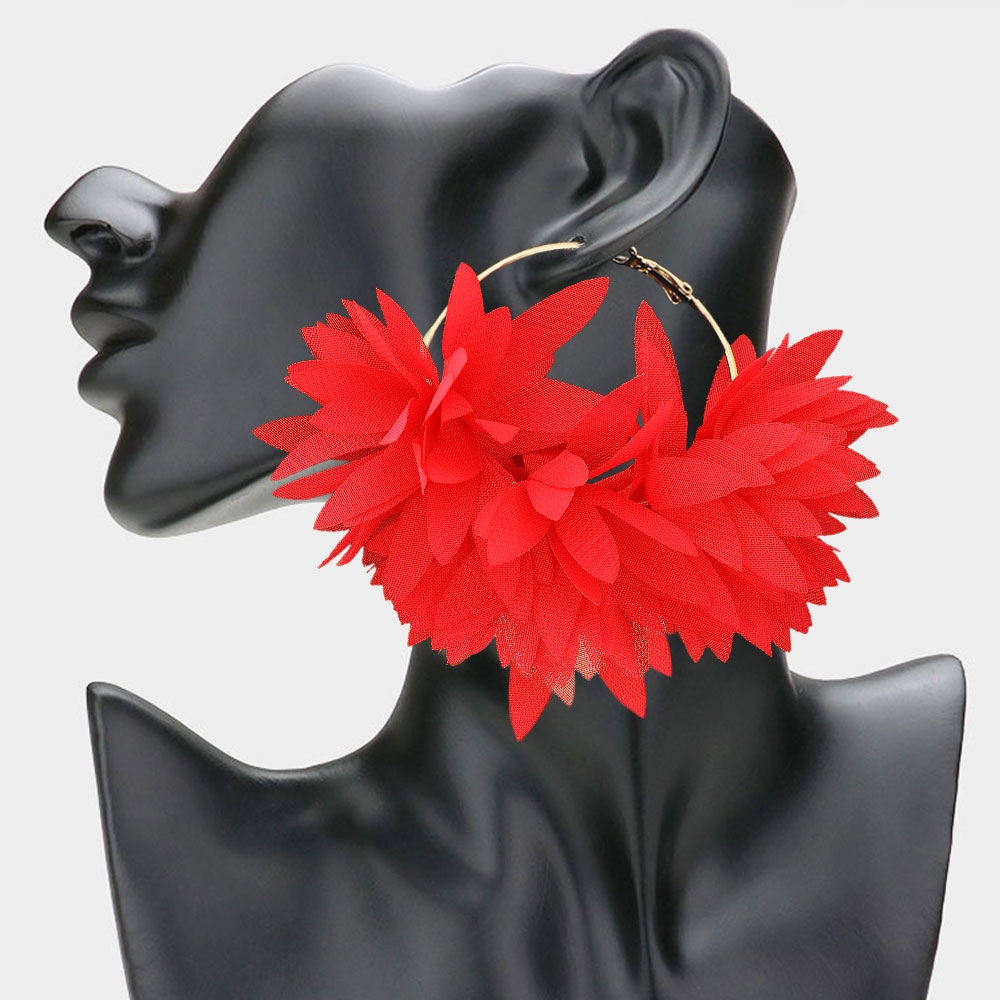Oversized Fabric Floral Petal Statement Hoop Earrings