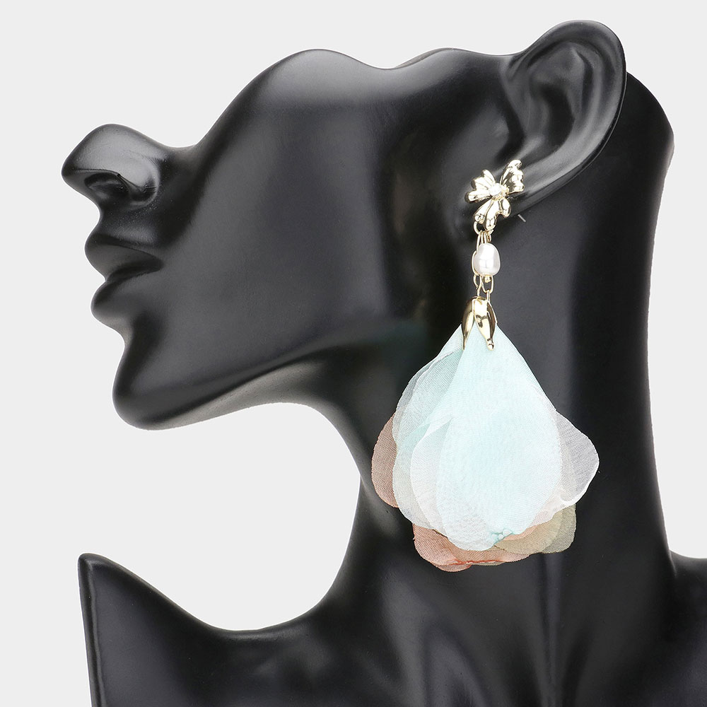 Pearl Centered Bling Studded Flower Pointed Bolo Tie Necklace