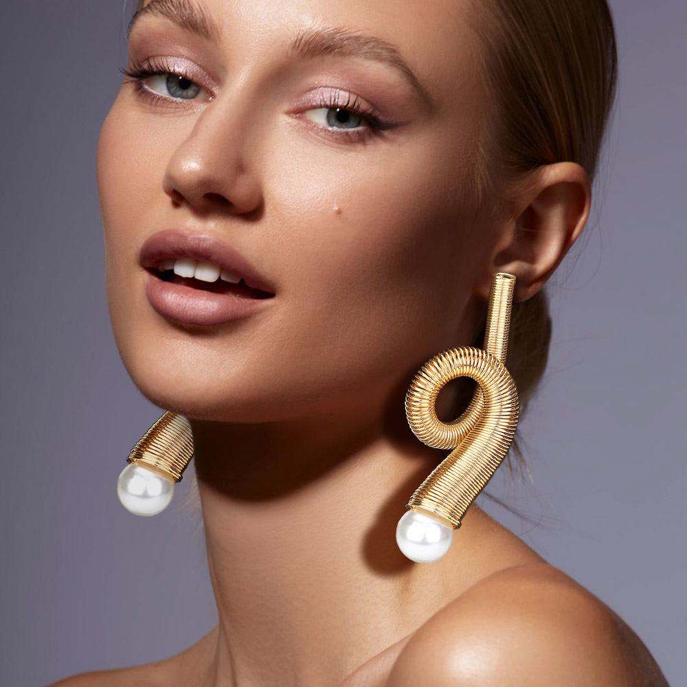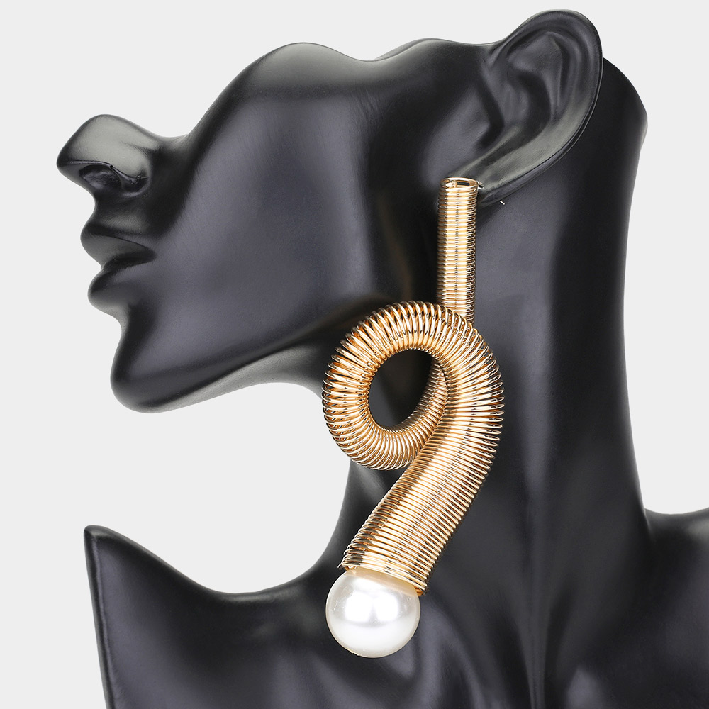 Oversized Pearl Tip Metal Wired Abstract Earrings
