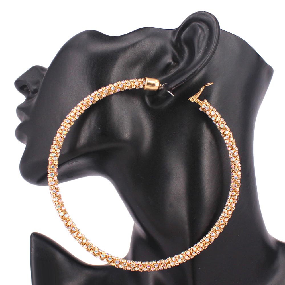 • Shine bright with these oversized rhinestone hoop earrings designed for maximum sparkle and glamour. Perfect for parties, night outs, or special events, they deliver bold style and lightweight comfort, making them the ultimate statement accessory for standout looks.