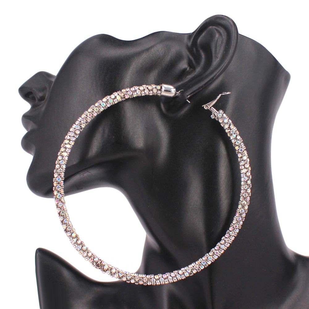 • Shine bright with these oversized rhinestone hoop earrings designed for maximum sparkle and glamour. Perfect for parties, night outs, or special events, they deliver bold style and lightweight comfort, making them the ultimate statement accessory for standout looks.