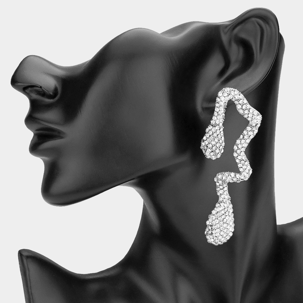 Rhinestone Paved Abstract Dangle Evening Earrings