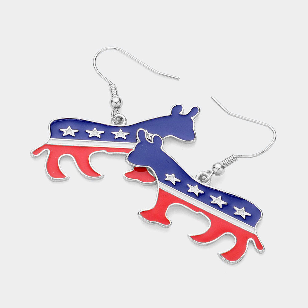 Patriotic Metal Donkey Dangle Earrings