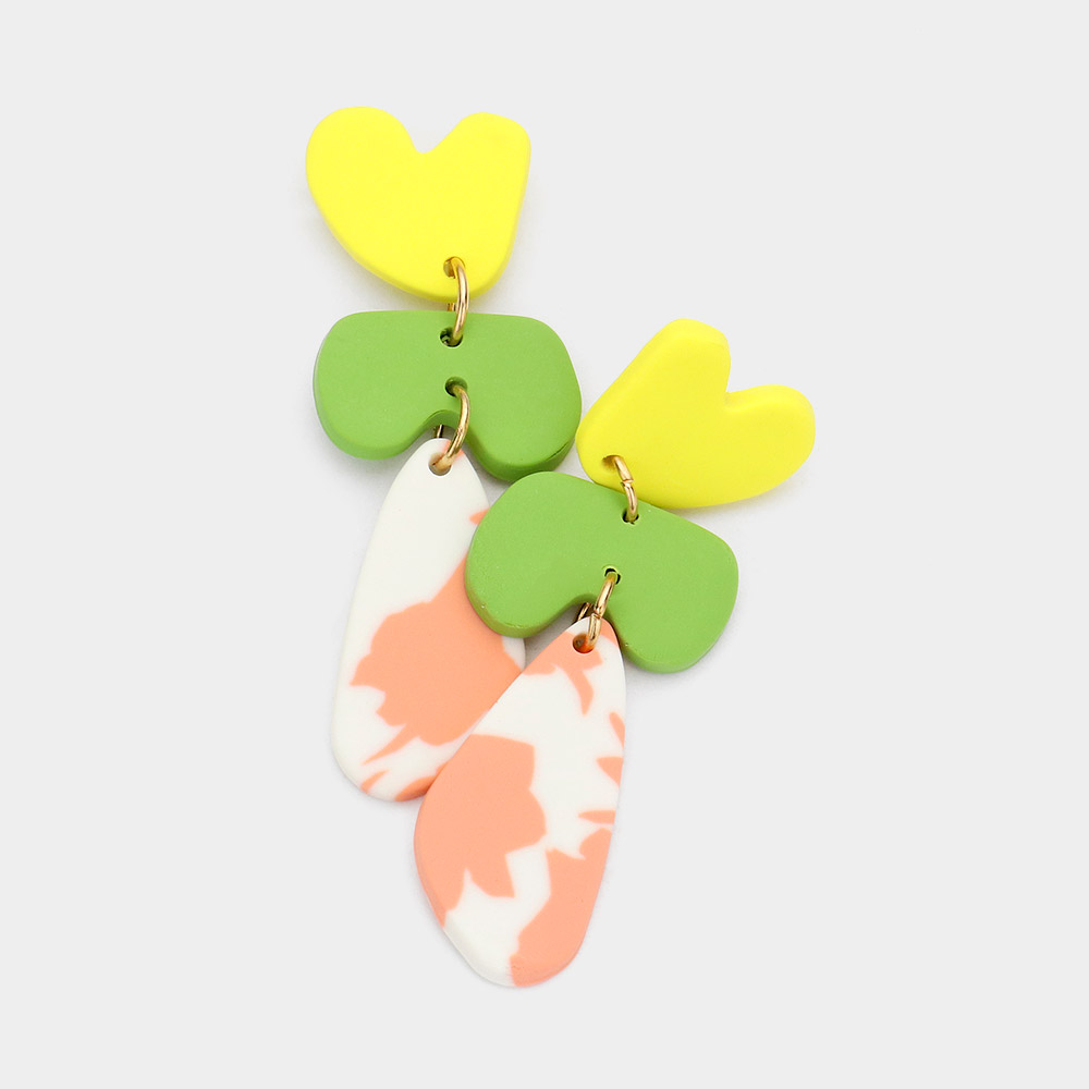 Patterned Abstract Triple Polymer Clay Link Dangle Earrings