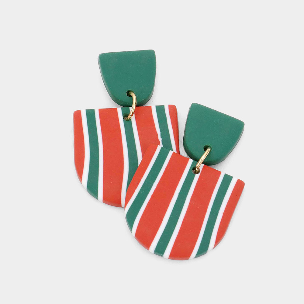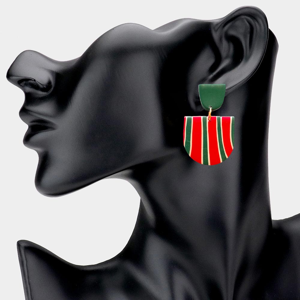 Patterned Half Oval Polymer Clay Dangle Earrings