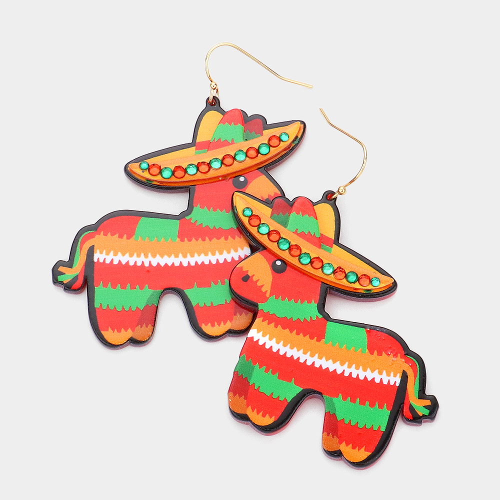 Patterned Resin Cowboy Hat Pony Dangle Earrings