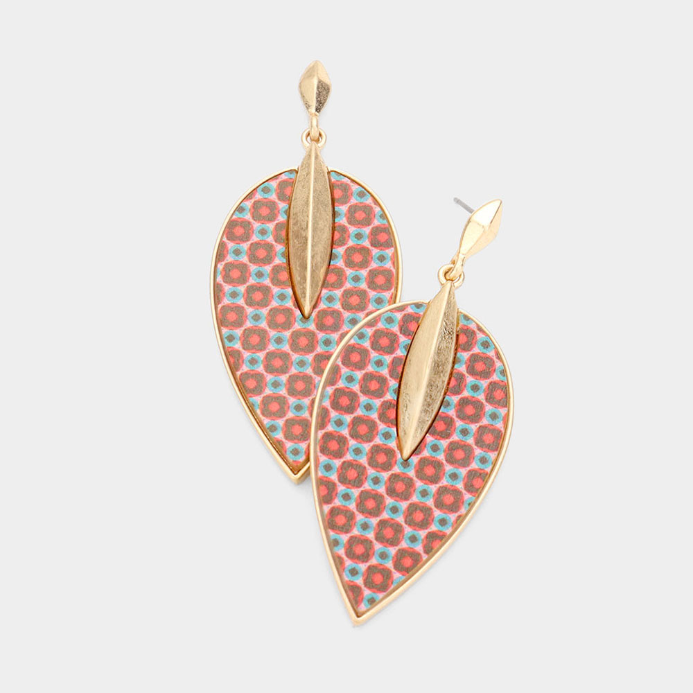 Patterned Wood Petal Dangle Earrings