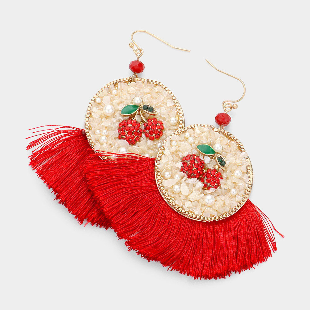 Pave Cherry Fan Tassel Drop Earrings